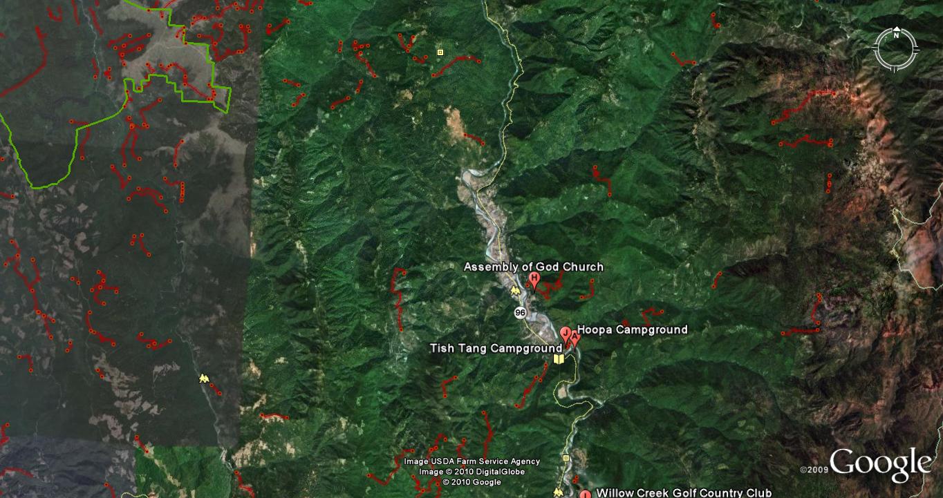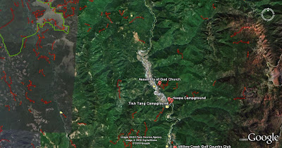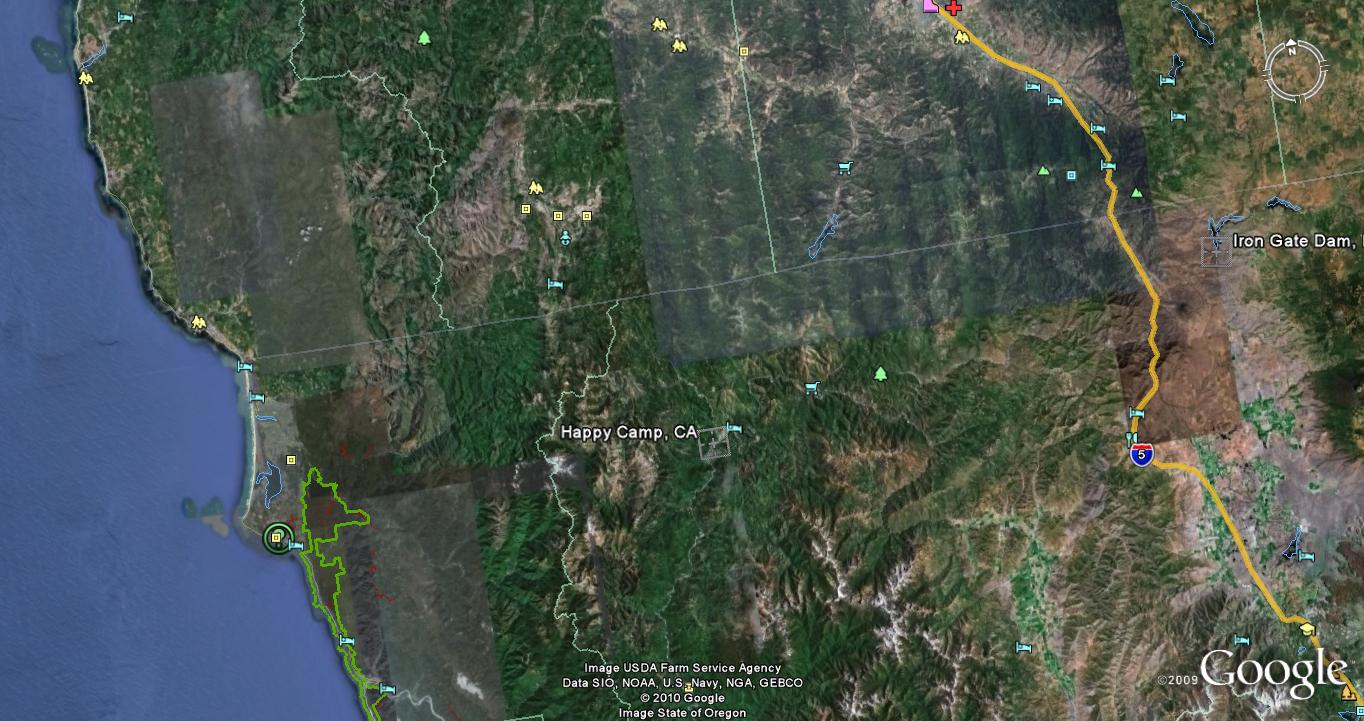 Sorry! As reported in the story, Conrad dropped his camera in the Klamath. No photographs survived. Isn't that just the way with all stories that involve sasquash, shape shifting, and desirable motorcycle mamas. All I can offer is a blowup of my cover graphics and some Google maps.